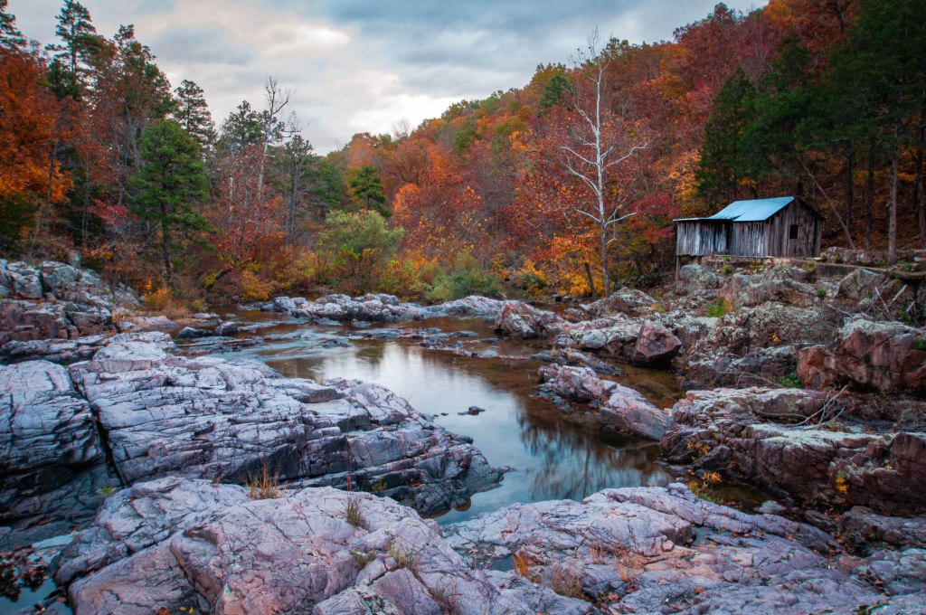 To me, the colors of the trees distracted the viewer away from the building. I was drawn to the colors but my intended subject was really the building. The building with the stream in the foreground really fits the area in the Ozark mountains. The rustic look of the rocks and the building. I vaguely remember doing some monochrome images of this scene but apparently, I didn’t like them as they no longer exist in my catalog.