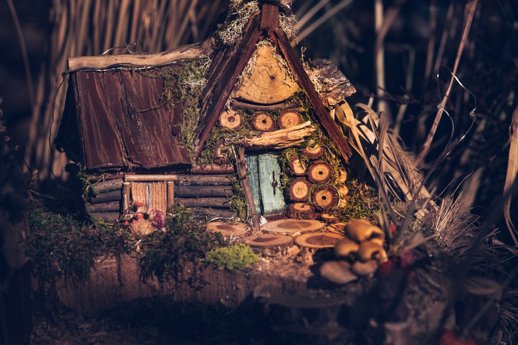 A while back I visited a local botanical garden. At the time, the garden displayed fairy houses created by artists in the area. All the fairy houses were fantastic works of art. Meticulously created with each element consciously added to create a scene. The problem I had when I visited with my camera was to record them in such a way that they expressed their story. The lighting was harsh often creating vast contrasts of light and dark. On top of that, because they were small in size and their placement for visitors to see them the scene was easily determined to be unrealistic. In fact, I have had these images for two years and never found a use for them.