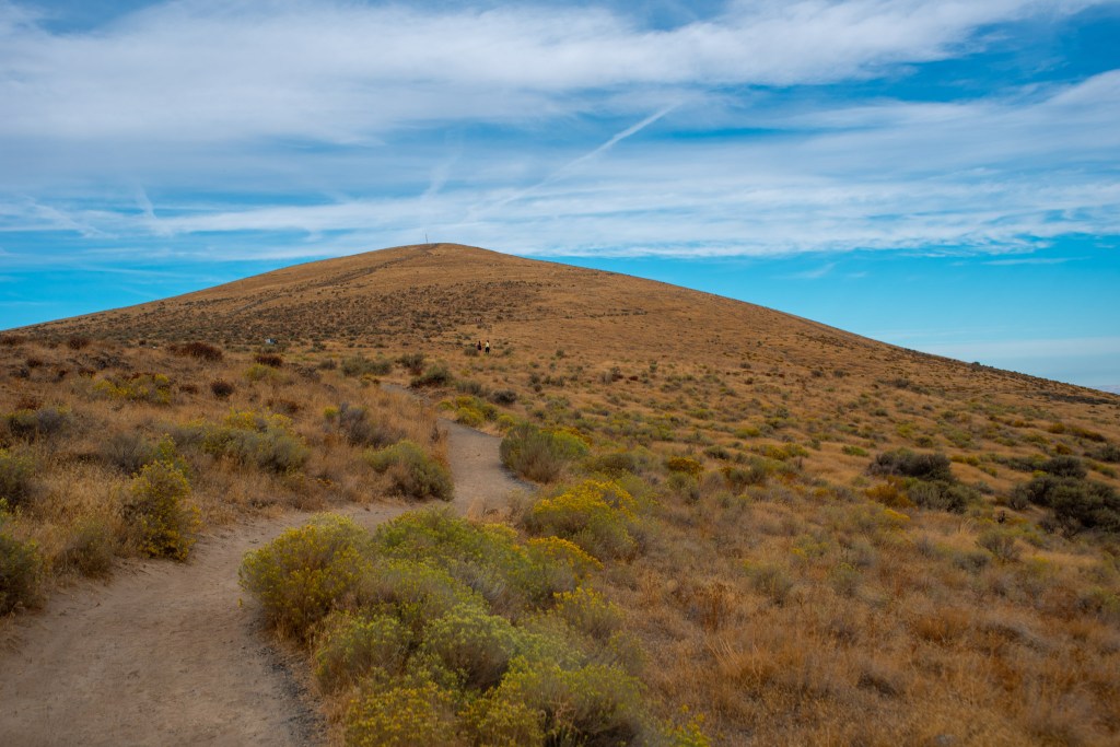 One of the things we discovered in our visit to the “Tri-Cities” (Richland, Pasco, and Kennewick) Washington is Sundays many things are closed, hiking trails, like in many locations are crowded. Learning that we stayed near our room on Sunday. Yesterday, Monday September 18, we visited Badger Mountain. Badger mountain has an elevation of 1,593 feet which is 1,000 feet higher than the location of our room. The weather was very tolerable, 75 degrees, with a nice breeze and low humidity. We only climbed to approximately 1,100 feet before returning to the parking lot. It wasn’t because we were tired but the way the trail went due to the steep climb it would have added a couple more miles to our walk and we had anticipated visiting a local winery, one of the other reasons we visited this area.
